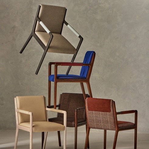 Offered in five models, Hazel maintains a consistent silhouette while allowing a range of textile applications for personalized expression. With an upright pitch designed for active posture, the collection brings quiet confidence to workplace, hospitality, and collaborative environments.
