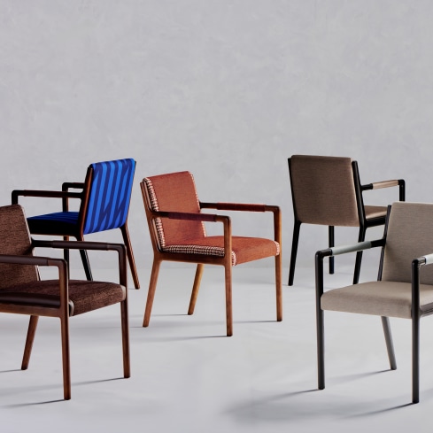 Offered in five models, Hazel maintains a consistent silhouette while allowing a range of textile applications for personalized expression. With an upright pitch designed for active posture, the collection brings quiet confidence to workplace, hospitality, and collaborative environments.